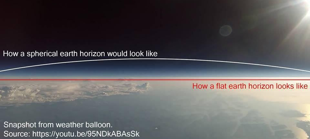 Man kann also auch eine Kugelerde oder sogar sowas wie eine Salatschüsselerde implizieren (Horizont weit unten ergibt konkave Form), wenn man das richtige Bild aus dem Video herausholt.